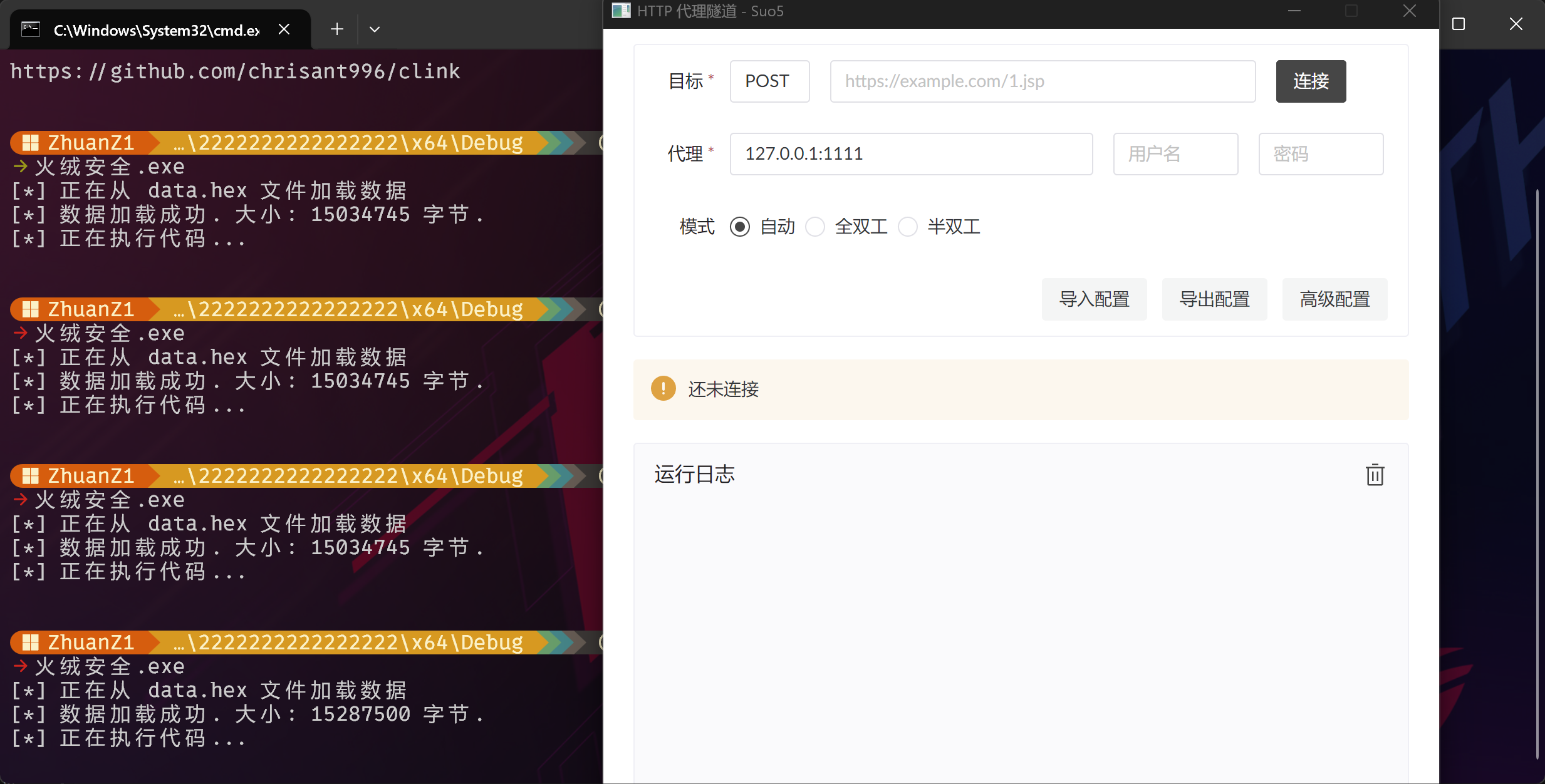 .\donut.exe -i suo5-gui-windows.exe -o data.hex -f 8 -a 2