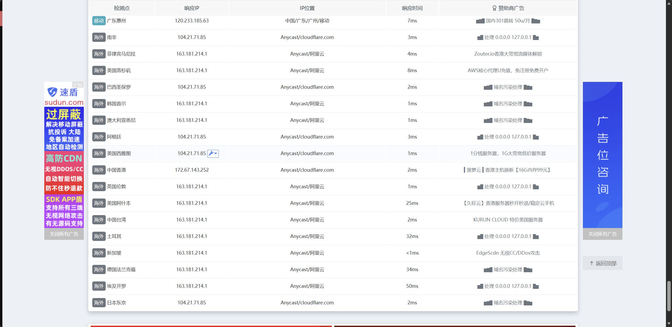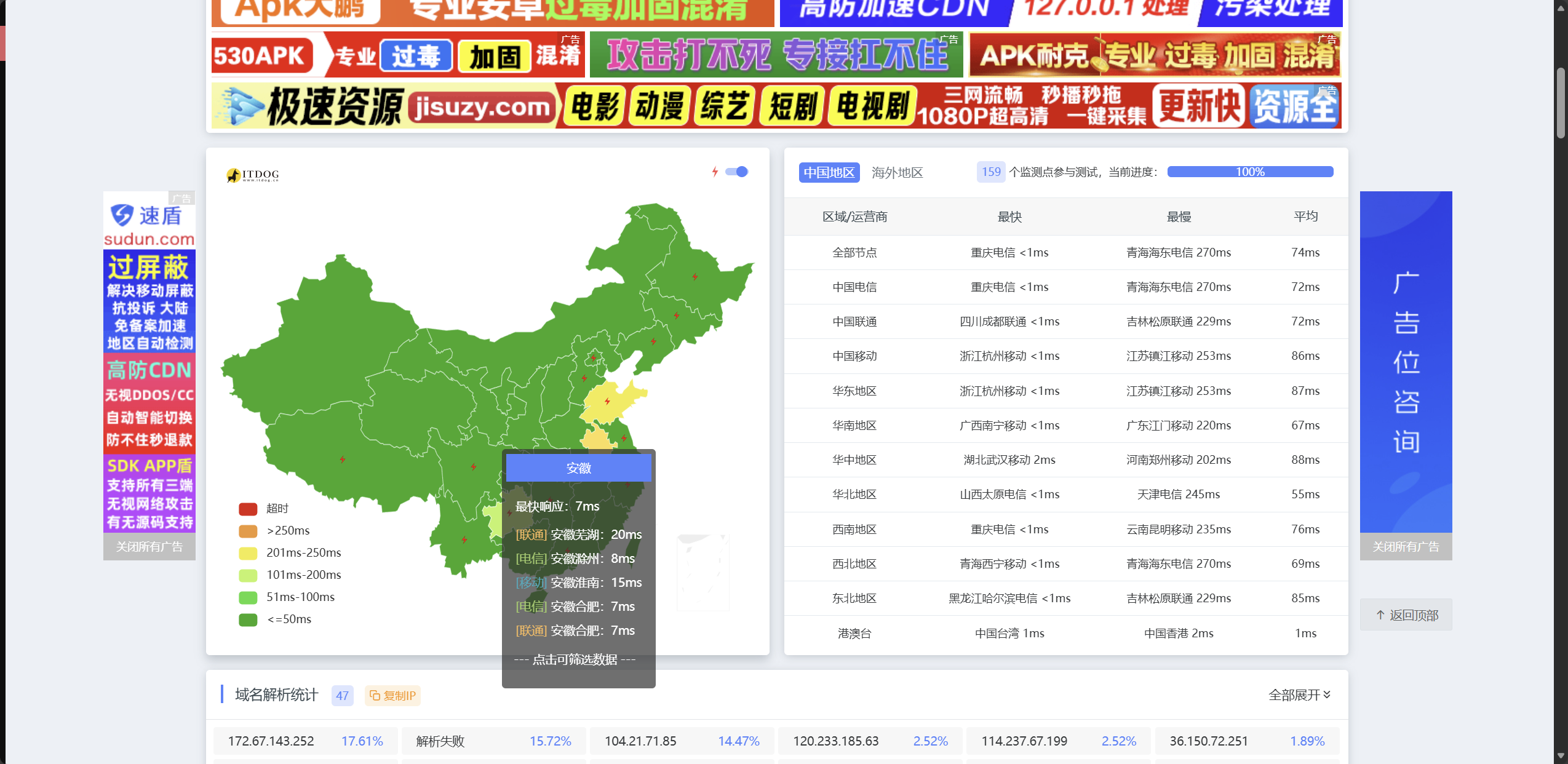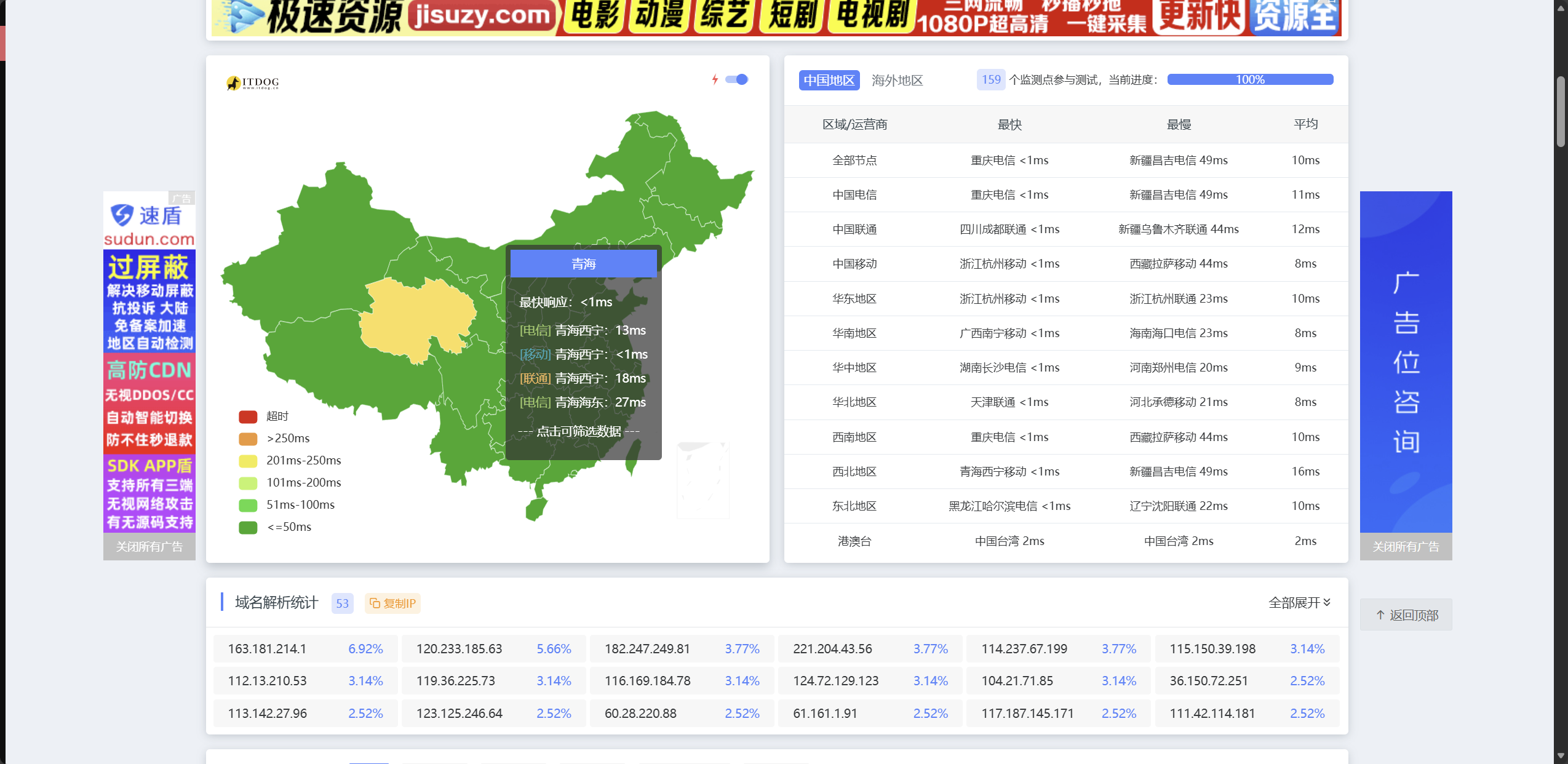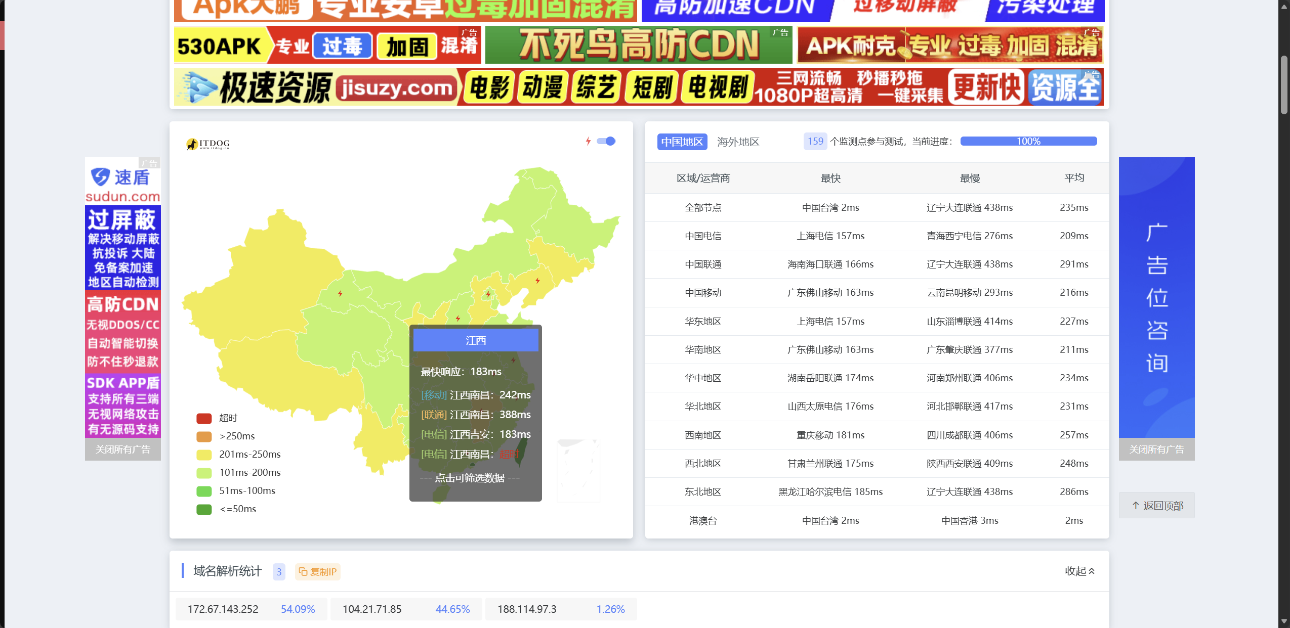 itdog测试一下延迟,国外节点esa和Cloudflare已经分流,国内使用eo。