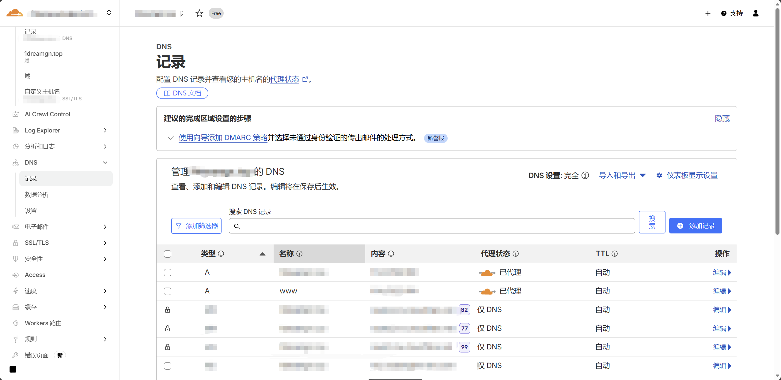添加dns解析,将业务ip使用A记录解析,并开启代理状态。