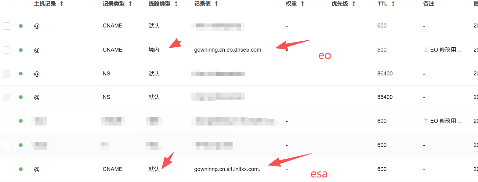 eo的cname一定要解析境内,esa和Cloudflare解析默认即可。