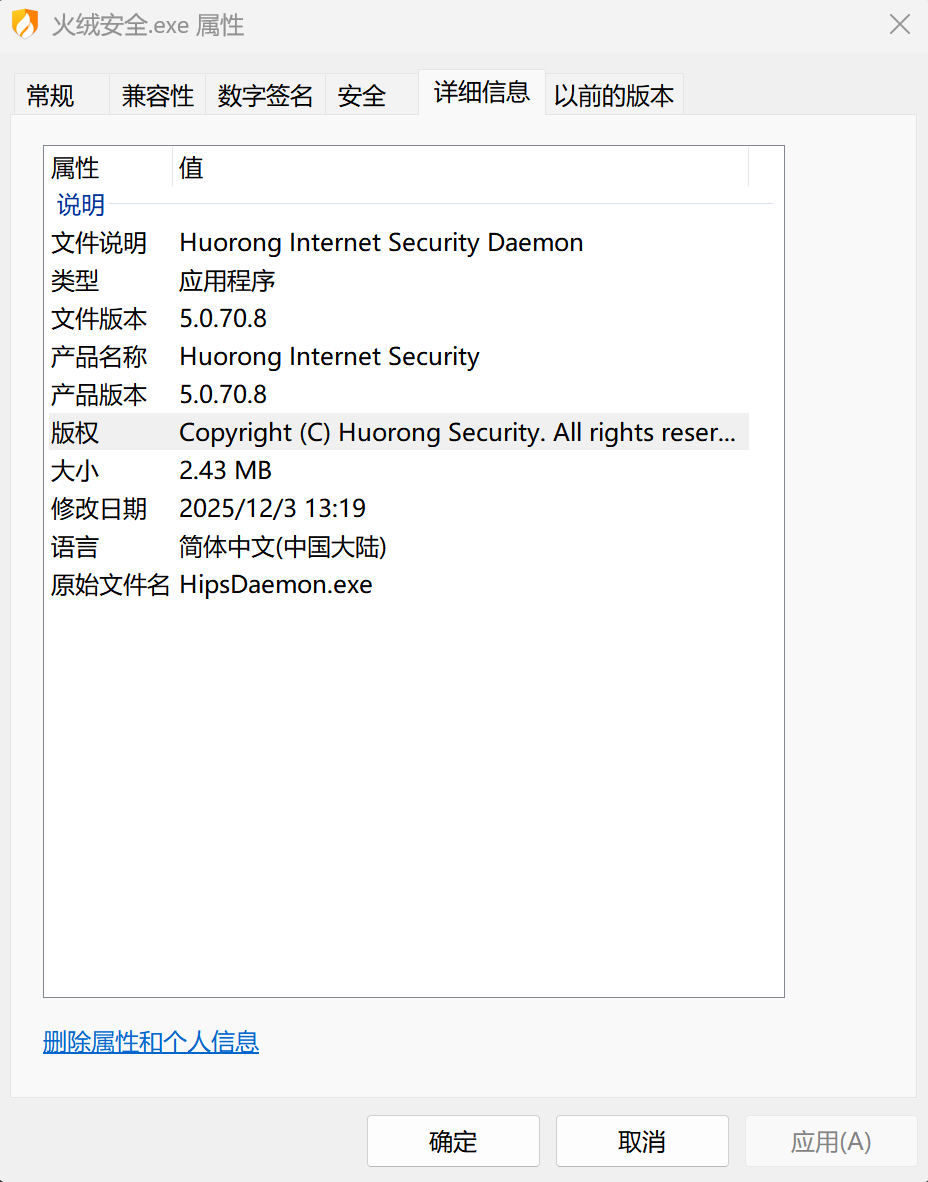 VALUE "FileDescription", "Huorong Internet Security Daemon"